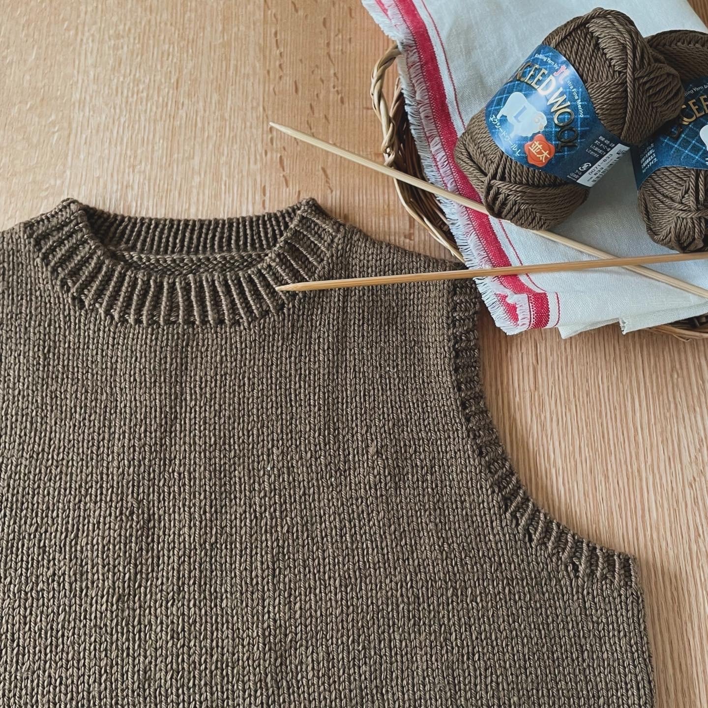 前後身頃を編んで、とじはぎをし、脇と衿を拾う。